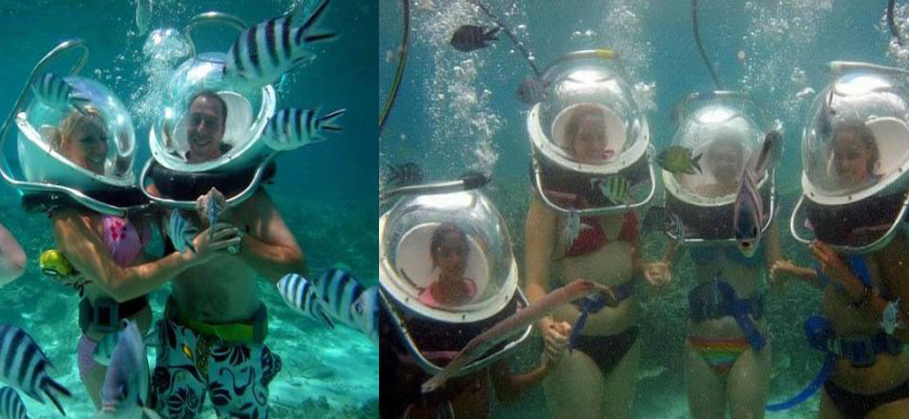 You can ride your sub scooter solo or seated one behind the other, two people on one of our sub scooters is twice the fun! You both breathe naturally under water through a shared bubble which gives you a 360 degree view through the glass. Enjoy watching the colorful fish as you move along three meters under the Indian ocean. Travelling at a leisurely 3 km per hour you will be able to take in all the wonderful marine life.
